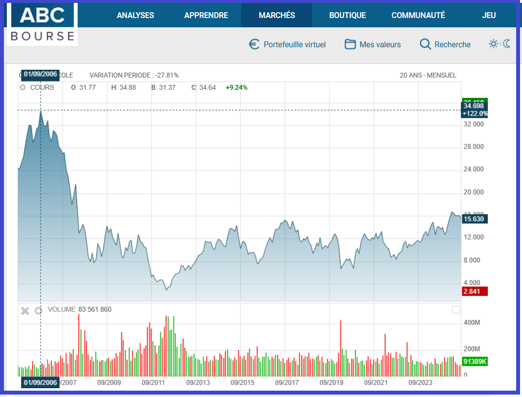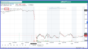 … à 15,38 € le lendemain matin à 10 heures 20, ce qui correspond à une baisse de 9,48 % en (quasiment) deux heures de séance, soit une perte de capitalisation boursière de… 4,870 milliards d’euros !