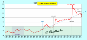 En effet, comme je l’ai écrit à maintes reprises, une hypertrophie monétaire de l’ordre de 10 000 milliards de dollars s’est développée aux États-Unis, cf. mes articles à ce sujet.