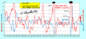 Ces pertes devraient donc faire éclater cette bulle monétaire américaine et donc refaire partir la croissance… théoriquement et paradoxalement, toutes choses égales par ailleurs car la croissance du PIB réel est inversement proportionnelle à la masse monétaire libre, cf. mes articles à ce sujet !