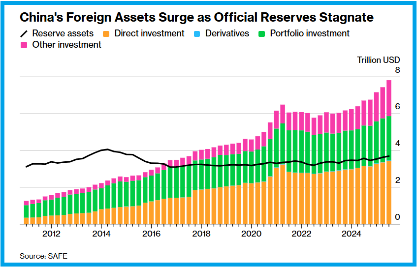 Grâce à son système productif largement excédentaire, la Chine devient une puissance financière internationale dominante et pour la première fois de son histoire, le secteur privé est devenu en 2025 créditeur net vis-à-vis de l’extérieur.