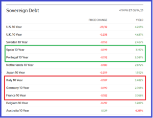 Pendant la séance du 14 août, les rendements des mauvais bons à 10 ans du Trésor français étaient à 3,336 % alors que les rendements de son homologue italien étaient à 3,482 %…