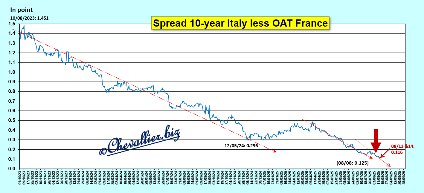 … ce qui signifie que leur écart est tombé à 0,116 point (ou 11,6 points de base), au plus bas de ce cycle, comme la veille à la clôture de la séance du 13 août !
