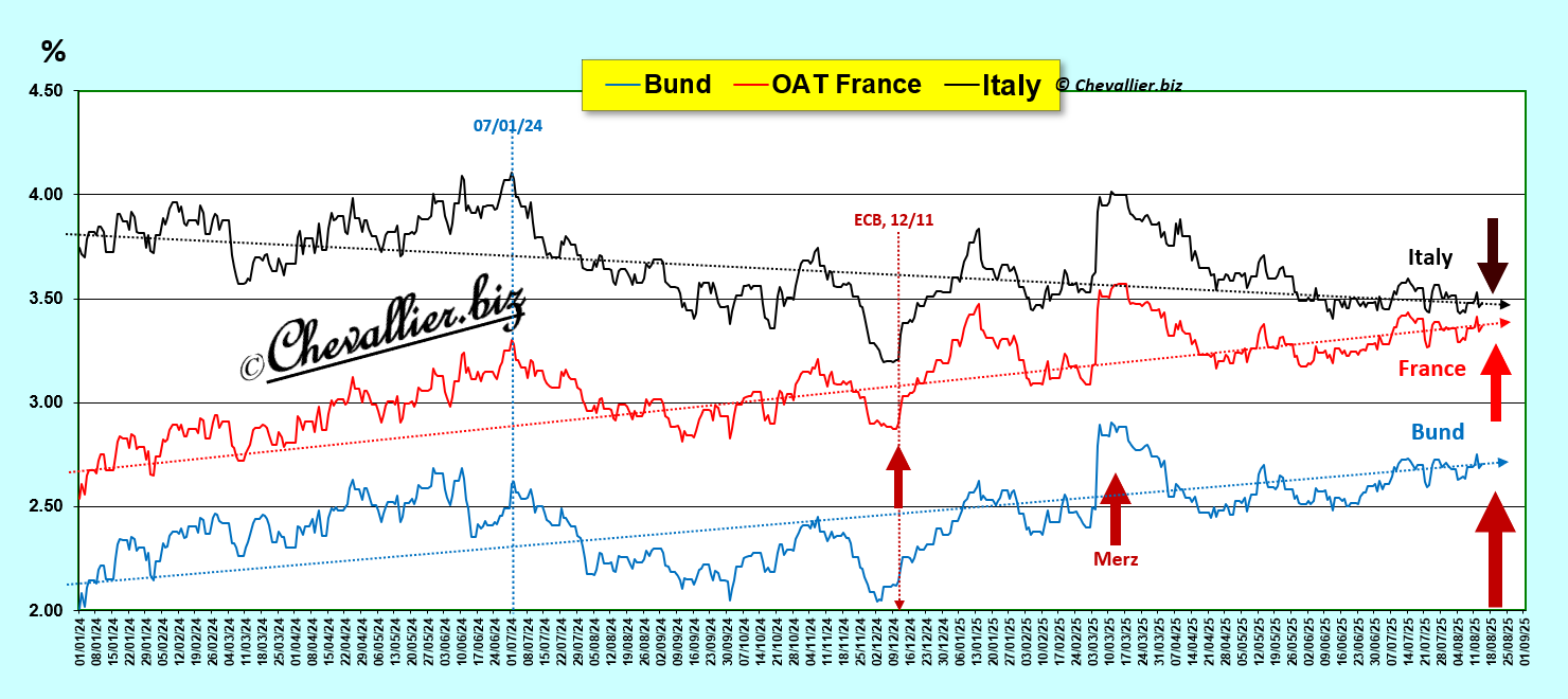 Pendant la séance du 14 août, les rendements des mauvais bons à 10 ans du Trésor français étaient à 3,336 % alors que les rendements de son homologue italien étaient à 3,482 %…