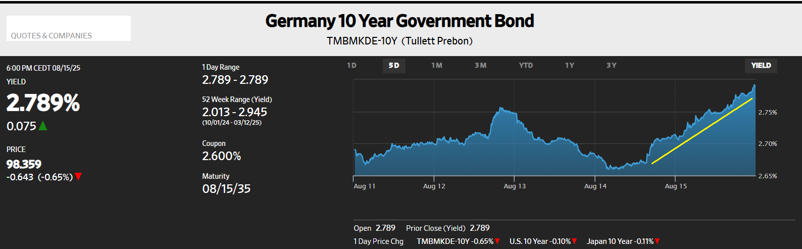 Par ailleurs, pendant la séance du 15 août, les rendements du Bund ont continué à bondir à la suite de la publication le 14 août de l’indice des prix à la production des États-Unis qui, plus élevé qu’attendu, préfigure la reprise de l’inflation, ce qui a provoqué une sortie massive de capitaux de la zone euro, car les bons spéculateurs considèrent que la situation économique va encore s’y aggraver,