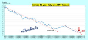 A ce jour, cet écart entre les mauvais bons à 10 ans des Trésors italien et français est inférieur à celui qui précédait le début des grandes turbulences associées à la Grande récession de 2008 !