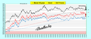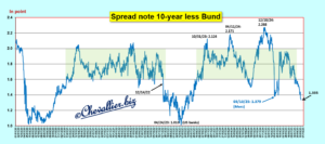 L’écart entre d’une part les rendements de l’OAT et du Bund et d’autre part leurs homologues américains se réduit dangereusement,