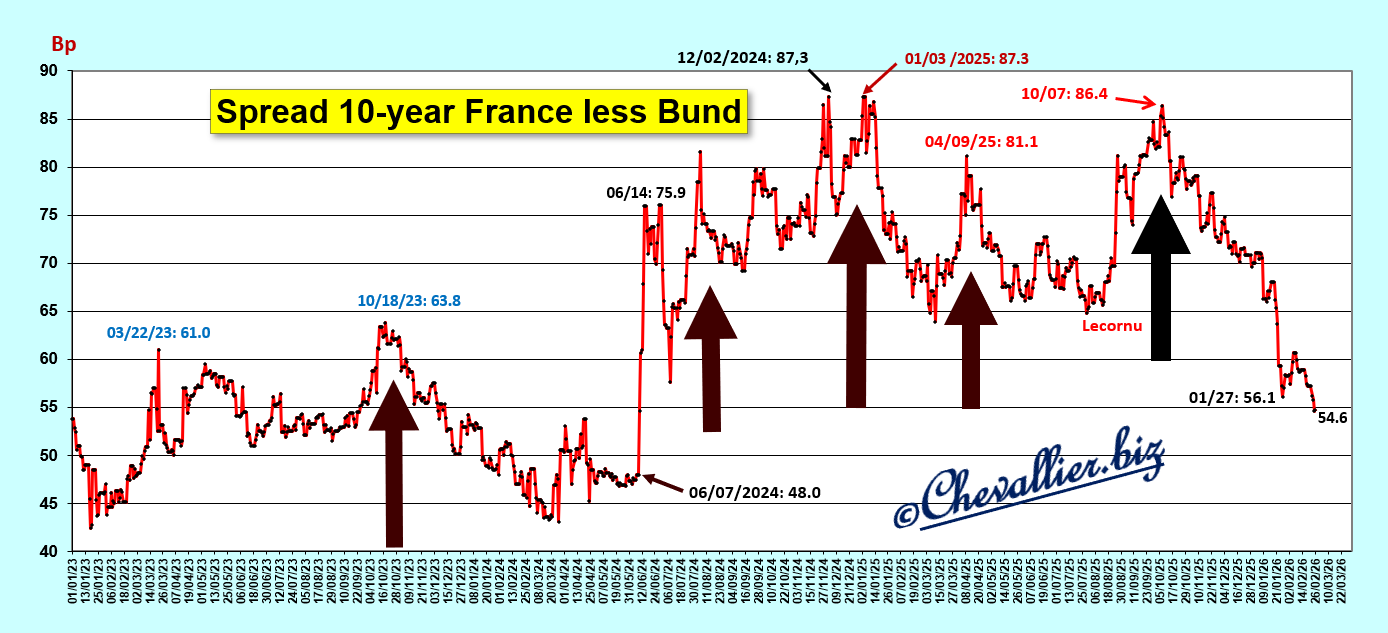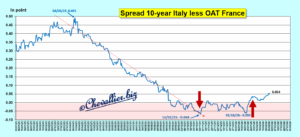 … ce qui fait apparaitre en fin de séance un écart flatteur miraculeux par rapport aux rendements du Bund à 54,6 points de base !