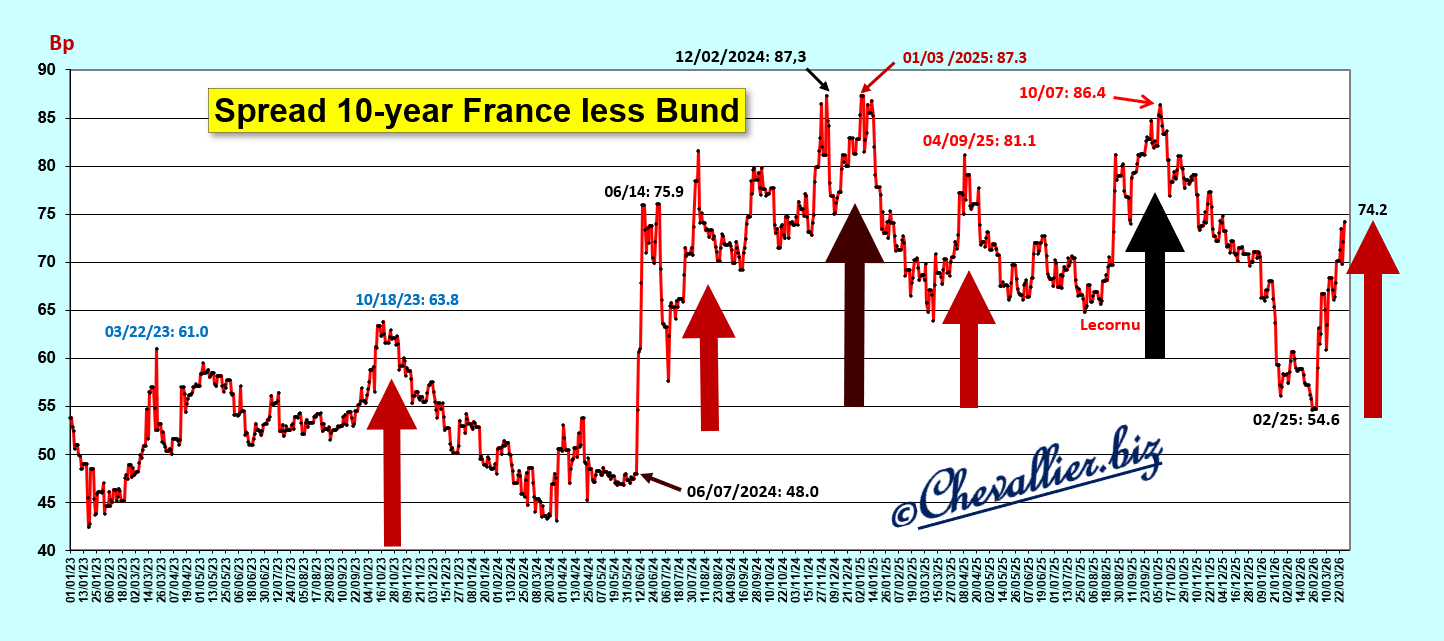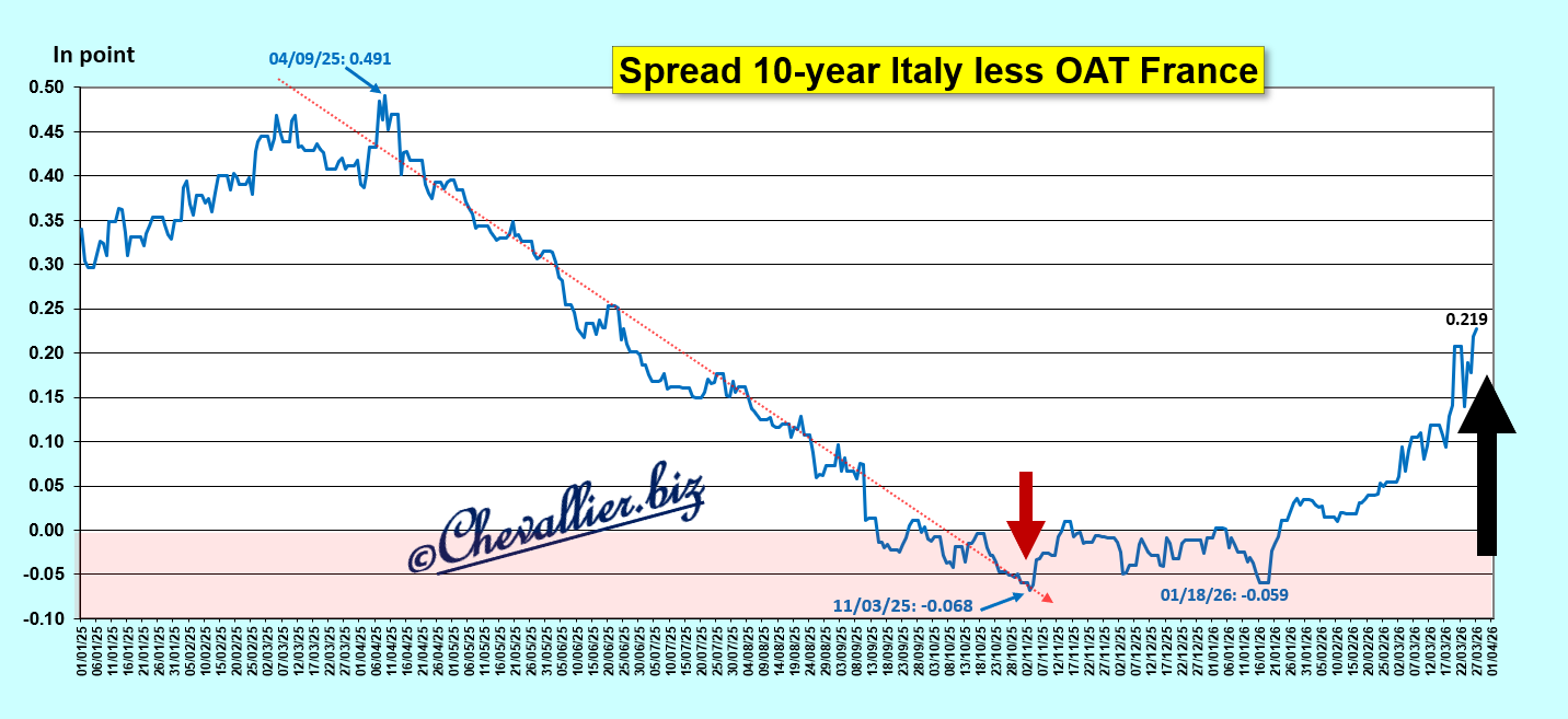En dehors de cette comparaison des rendements des bons à 10 ans du Trésor de la France par rapport à ceux de l’Allemagne, il faut préciser que c’est l’économie de tous les pays européens qui se dégrade, surtout depuis cette guerre en Iran.