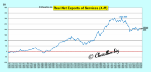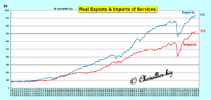 Pour ce qui concerne les services, la situation est plus favorable aux Américains car les exportations sont largement supérieures aux importations et les tariffs n’ont pas eu de répercussions négatives,