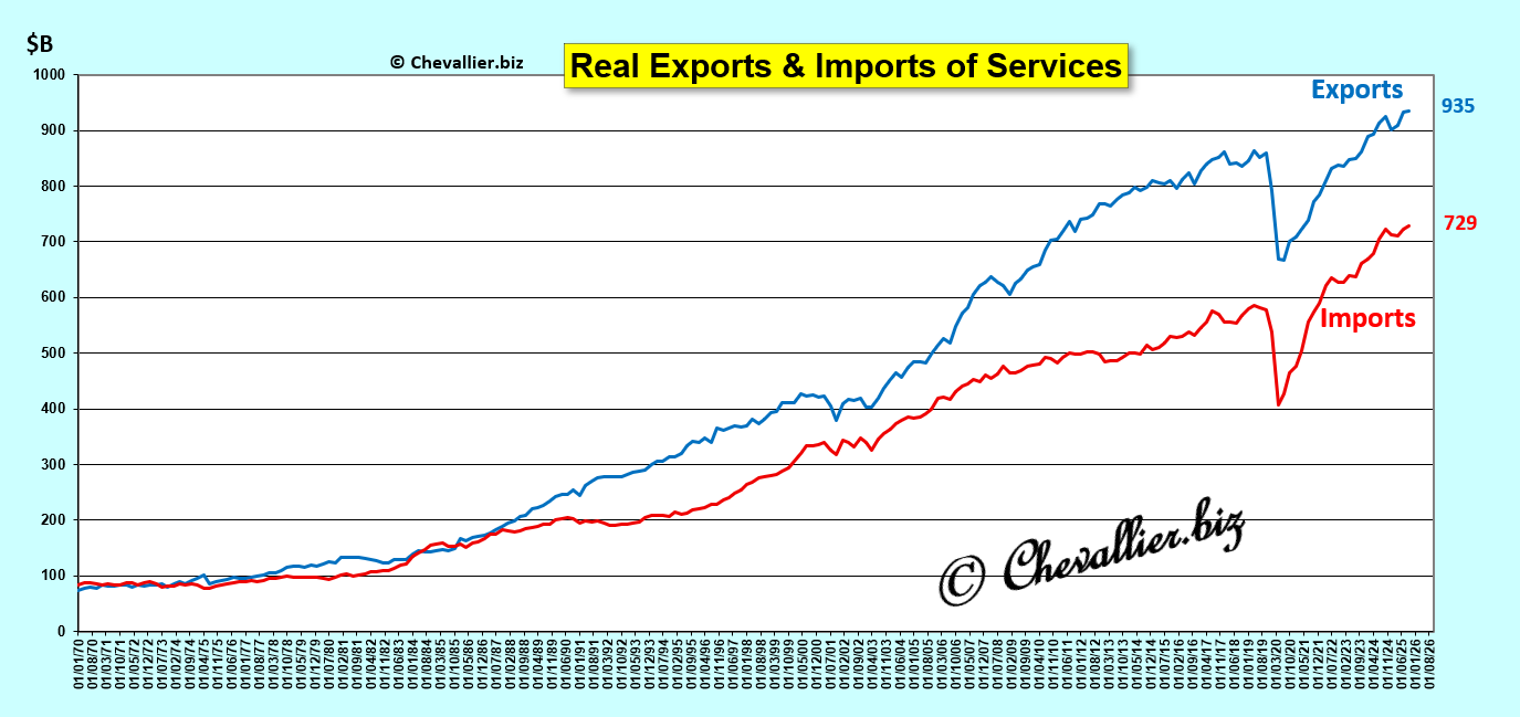 Pour ce qui concerne les services, la situation est plus favorable aux Américains car les exportations sont largement supérieures aux importations et les tariffs n’ont pas eu de répercussions négatives,
