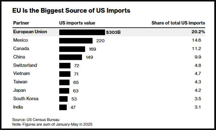 Ces déficits de la balance commerciale américaine ne proviennent pas des exportations massives de la Chine comme le prétend le Donald mais de l’Europe !