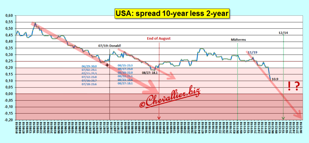 L’écart entre les rendements des Notes à 10 ans et ceux des Notes à 2 ans, le yield spread 10y-2y est tombé à… 09,9 points…