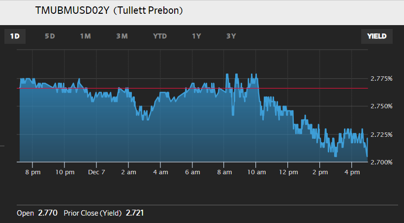 Les variations des rendements des Notes à 2 ans ont été de grande ampleur le 6 décembre (jusqu’à 10 points de base !)… Document 1…