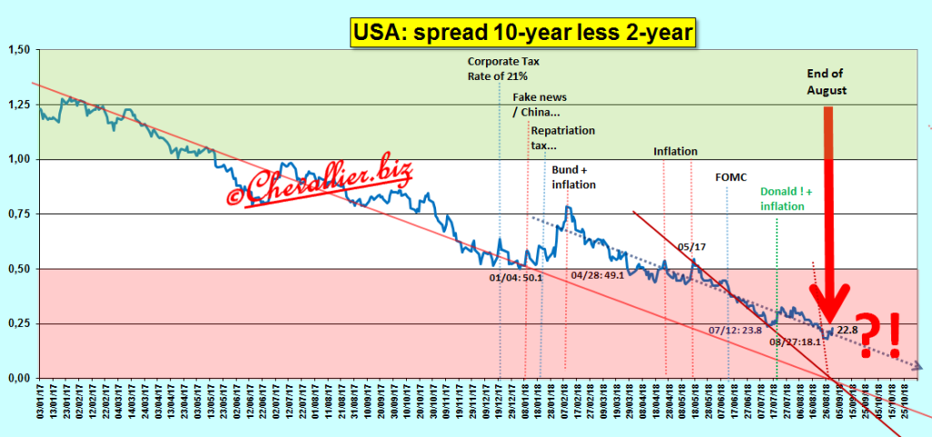 Toutes les droites de tendances du spread 10y-2y convergeaient vers le zéro au plus tard fin août mais les interventions du Donald (surtout à la…