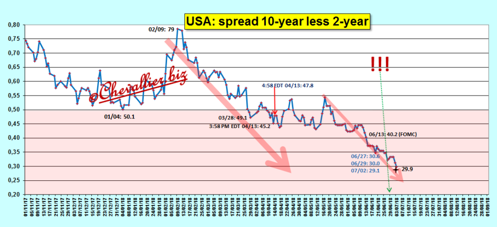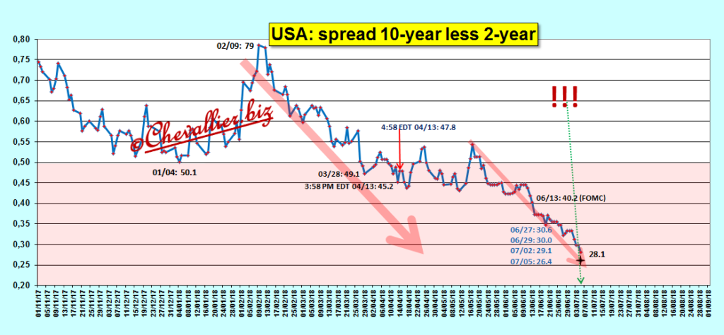 Suite et compléments des articles précédents sur ce sujet… Mardi 3 juillet, l’écart entre les rendements des Notes à 10 ans et ceux des Notes…