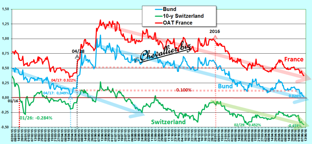Hier 16 juin, les rendements du Bund et du Schatz ont battu leur plus bas historique… Document 1 : … ainsi que ceux des bons…
