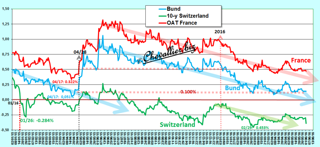 Hier 1° juin, les rendements des bons à 10 ans du Trésor helvète ont magistralement plongé… Document 1 : … pour revenir au niveau correspondant…