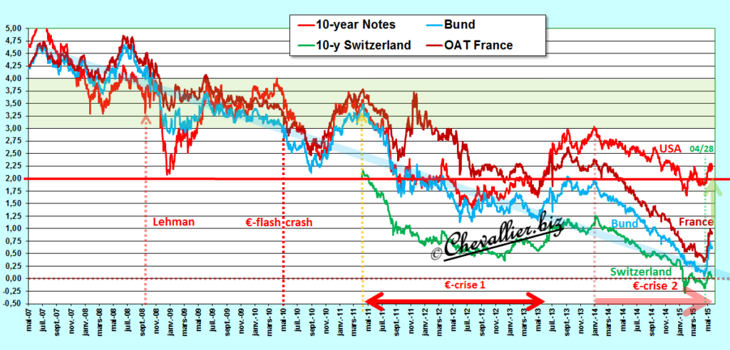 Alors que les rendements des bons des Trésors de référence s’acheminaient depuis juillet 2007 vers un Grexit de tous les dangers préludant à de grandes…