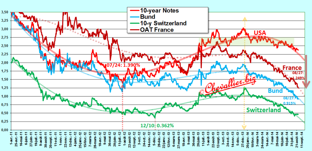 Les rendements des bons bons des Trésors allemands et helvètes jusqu’aux 2 ans étaient hier 20 août négatifs ! Document 1 : … ce qui…