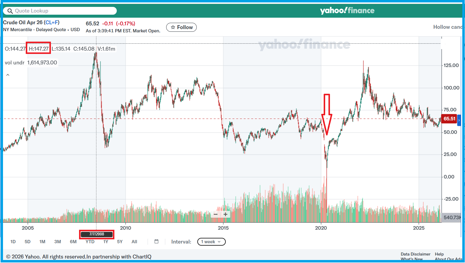 Oui mais sur la longue période, le prix du pétrole fluctue normalement autour de 65 dollars le baril alors qu’avant la guerre en Ukraine, il avait bondi et il en a été de même à partir de 2007 avant la Grande récession de 2008 !
