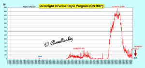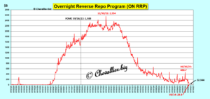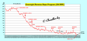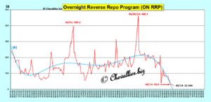 La situation de ces bonnes banques vient de brusquement s’aggraver car elles n’ont plus de liquidités excédentaires à placer auprès de la Fed, d’un jour à l’autre, en overnight dans le cadre de la procédure dite de Reverse Repo (ON RRP).