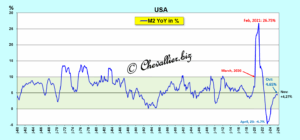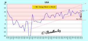 En d’autres termes, après une dérivée haussière de cet agrégat monétaire M2 un retournement est intervenu au mois de novembre dernier qui se manifeste par une dérivée seconde baissière.
